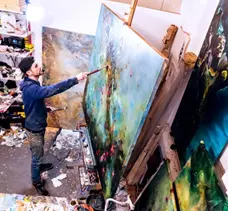 Becoming an artist was my lifetime ambition since winning a national Christmas Card competition, with my drawing of an angel, at the age of five. I remember going through piles and piles of ‘computer paper’ at home whilst growing up, constantly drawing, painting, copying, colouring, and creating things. It was by far my favourite subject…